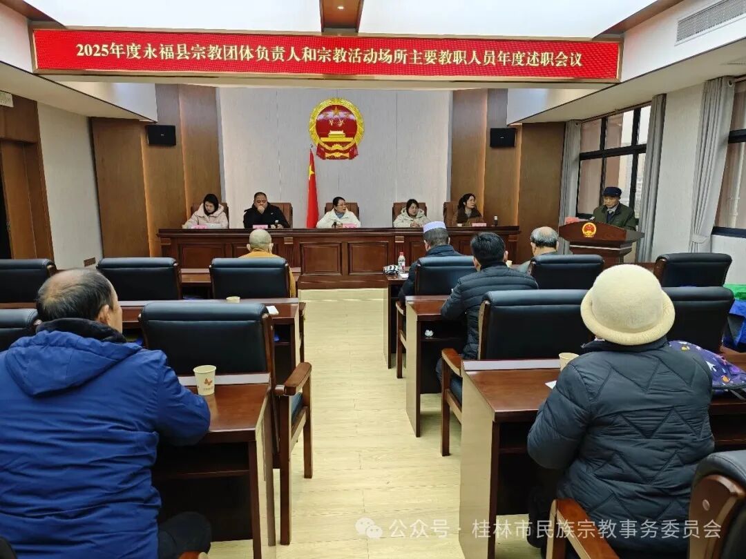 2026年2月9日,永福县召开2025年度全县宗教团体负责人和宗教活动场所主要教职人员述职评议会,全县宗教团体负责人、宗教活动场所负责人和教职人员总计20余人参会。