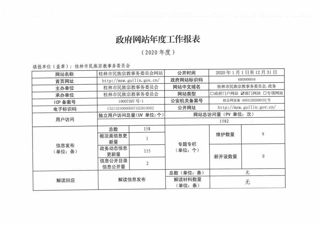 桂林市民族宗教事务委员会2020年度政府网站年度工作报表