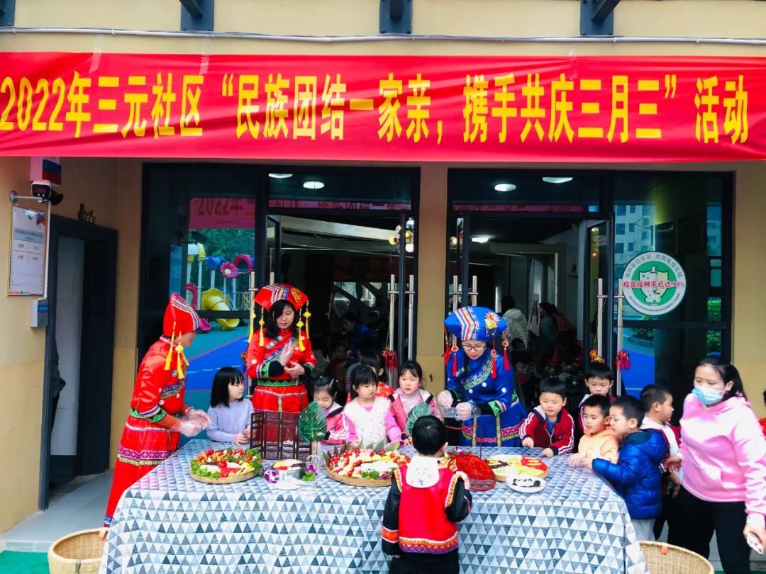 3月31日上午,临桂三元社区工作人员与多美幼儿园小朋友身着民族服装,手拉手载歌载舞,欢快地跳着竹竿舞,共庆壮族“三月三”传统节日。活动上大家互相分享壮乡美食、民族服装时装秀,营造了民族团结一家亲的和谐气氛。