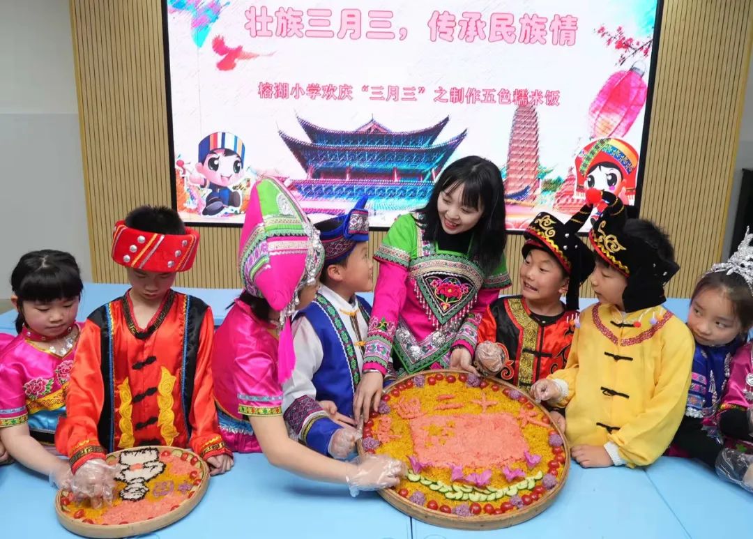 27日,榕湖小学迎接壮族“三月三”校园民俗活动在校园举行。为了让更多师生了解壮族“三月三”的民俗传统,榕湖小学通过不同的场景视频拍摄,制作成微电影,在全校和各个班级进行展播,让传统文化插上现代文明的翅膀,飞入更多孩子们的心田。