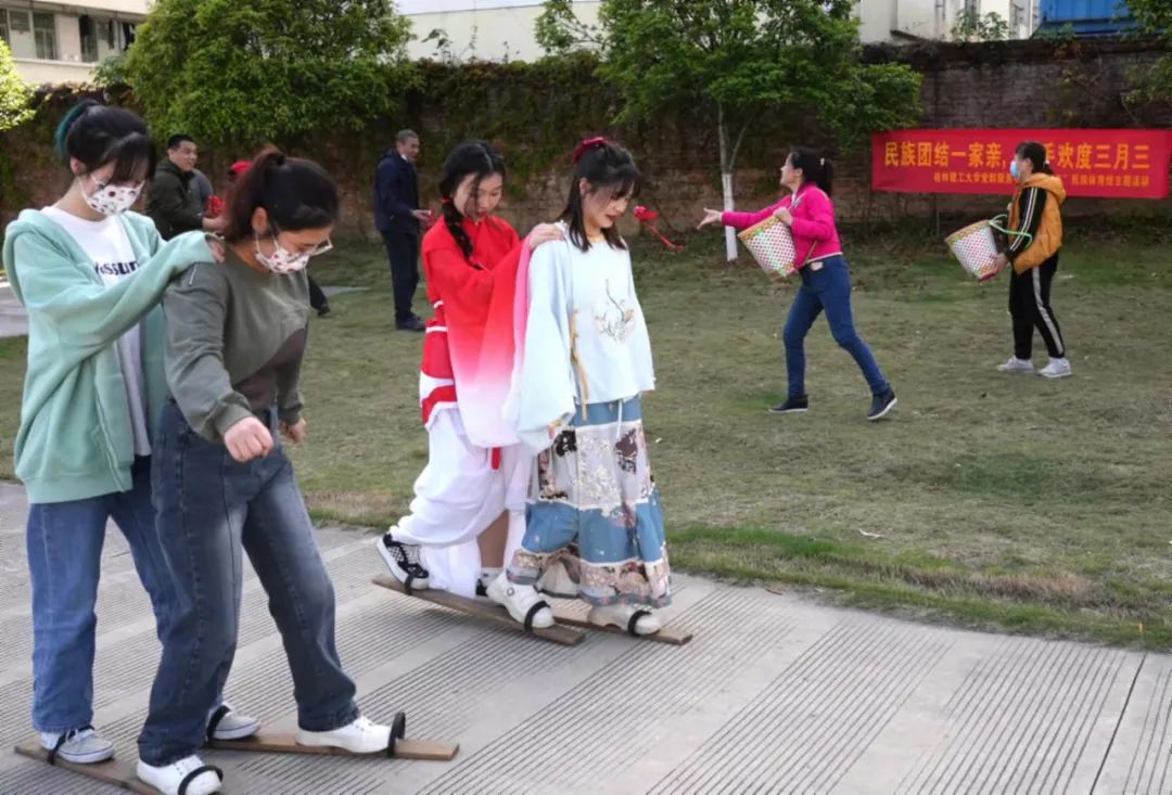 为喜迎“三月三”的到来,28日,理工大社区举行“民族团结一家亲 携手欢庆三月三”民族体育炫主题活动。来自社区的居民和大学生志愿者一起举行板鞋竞速、背篓接绣球等民族趣味体育活动,大家在轻松、愉快的氛围中迎接“三月三”到来。