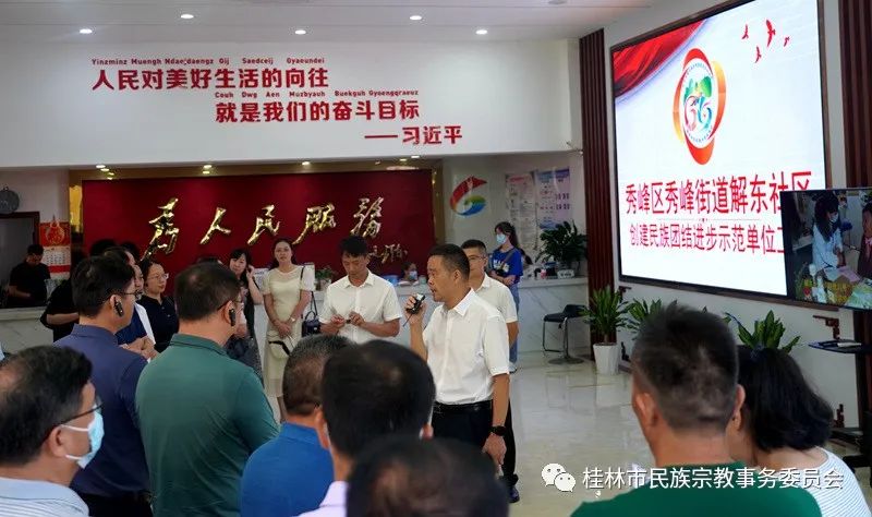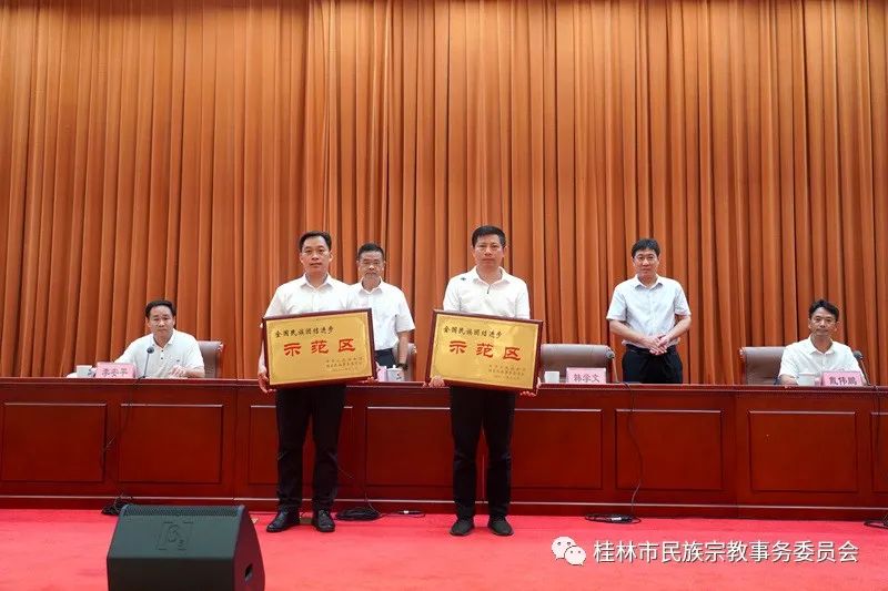 会议期间,与会人员先后到秀峰区解东社区、市少数民族服务中心、广西师范大学、市政务服务中心现场学习交流。会议对获得第九批全国民族团结进步示范区的象山区、秀峰区进行了授牌,并对市民宗委等28个单位获得第五批自治区民族团结进步示范单位称号进行了通报。兴安县、阳朔县、恭城瑶族自治县、象山区、秀峰区、七星区、市行政审批局、广西师范大学在会上作典型发言。