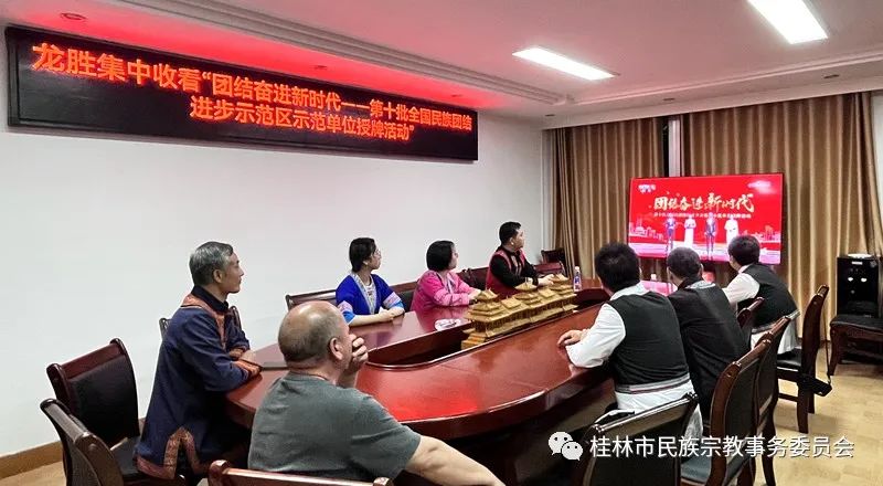 5月3日20时,由国家民委和中央广播电视总台联合举办的“团结奋进新时代——第十批全国民族团结进步示范区示范单位授牌活动”在中央电视总台CCTV-1播出,全市统战、民宗系统、市民族工委委员会成员单位、各创建单位共800余人通过集中组织、个人收看方式收看了授牌活动。桂林市委常委、统战部部长蒋育亮在市少数民族服务中心参加集中收看活动。