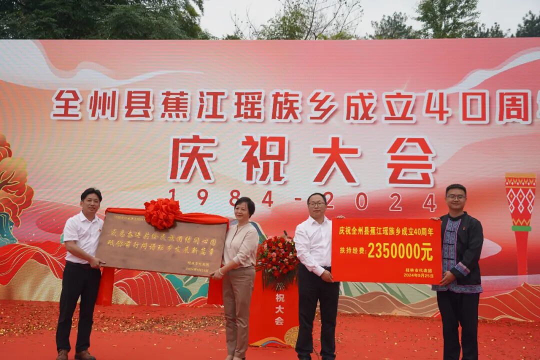 谢永功代表市四家班子,向蕉江瑶族乡成立40周年表示热烈祝贺。他表示,希望蕉江瑶族乡各族干部群众要以民族乡成立40周年为新的起点,倍加珍惜成绩,倍加把握机遇,倍加求真务实,倍加奋发有为,以铸牢中华民族共同体意识为主线,坚持“两个保护”、绘就生态蕉江,推动绿色发展、建设和美蕉江,强化文旅融合、涵养红色蕉江,创新治理、打造平安蕉江,积极融入桂林打造世界级旅游城市发展大局,再创佳绩、再铸辉煌。