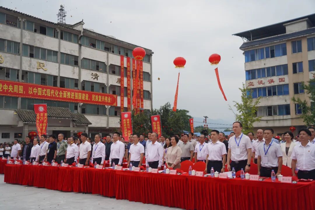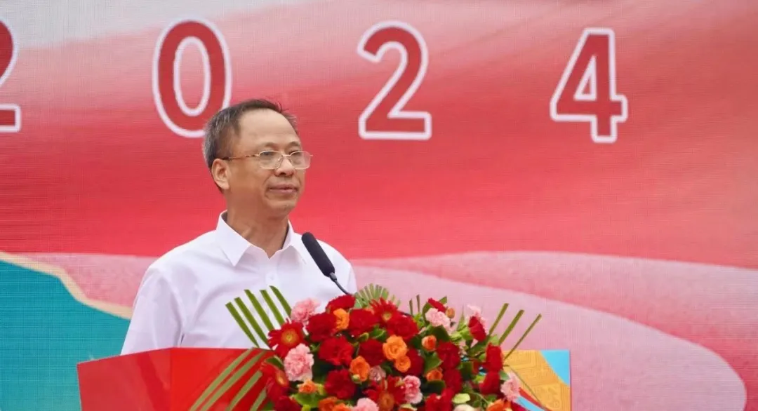 上午10时30分,庆祝大会在雄壮的国歌声中开幕。韦如柱代表自治区民宗委向全乡各族人民表示热烈祝贺,他希望蕉江瑶族乡各族干部群众始终坚持以习近平新时代中国特色社会主义思想为指导,深入贯彻落实党的二十届三中全会精神,完整准确全面学习贯彻习近平总书记关于加强和改进民族工作的重要思想,深入贯彻落实习近平总书记关于广西工作论述的重要要求,始终坚持生态保护与经济发展相统筹,进一步践行“绿水青山就是金山银山”理念;始终坚持保障和改善民生,不断巩固拓展脱贫攻坚成果,扎实推进乡村振兴;始终坚持铸牢中华民族共同体意识这条主线,促进各民族交往交流交融,不断开创新时代新征程蕉江瑶族乡高质量发展新局面,为奋力谱写中国式现代化广西篇章作出新的更大贡献。