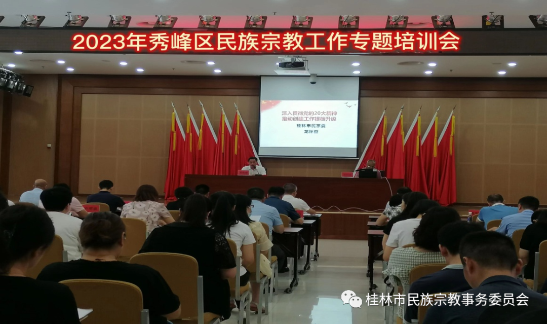 为推动秀峰区民族宗教工作高质量发展,巩固提升秀峰区全国民族团结进步示范区建设成果,7月5日上午,秀峰区组织召开2023年民族宗教工作专题培训会。区四家班子领导、区委统一战线工作领导小组成员单位主要负责人、各村(社区)主要负责人共80余人参加此次培训。