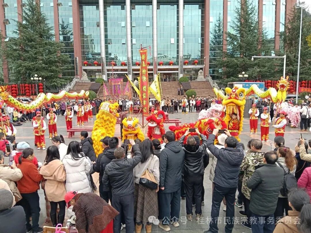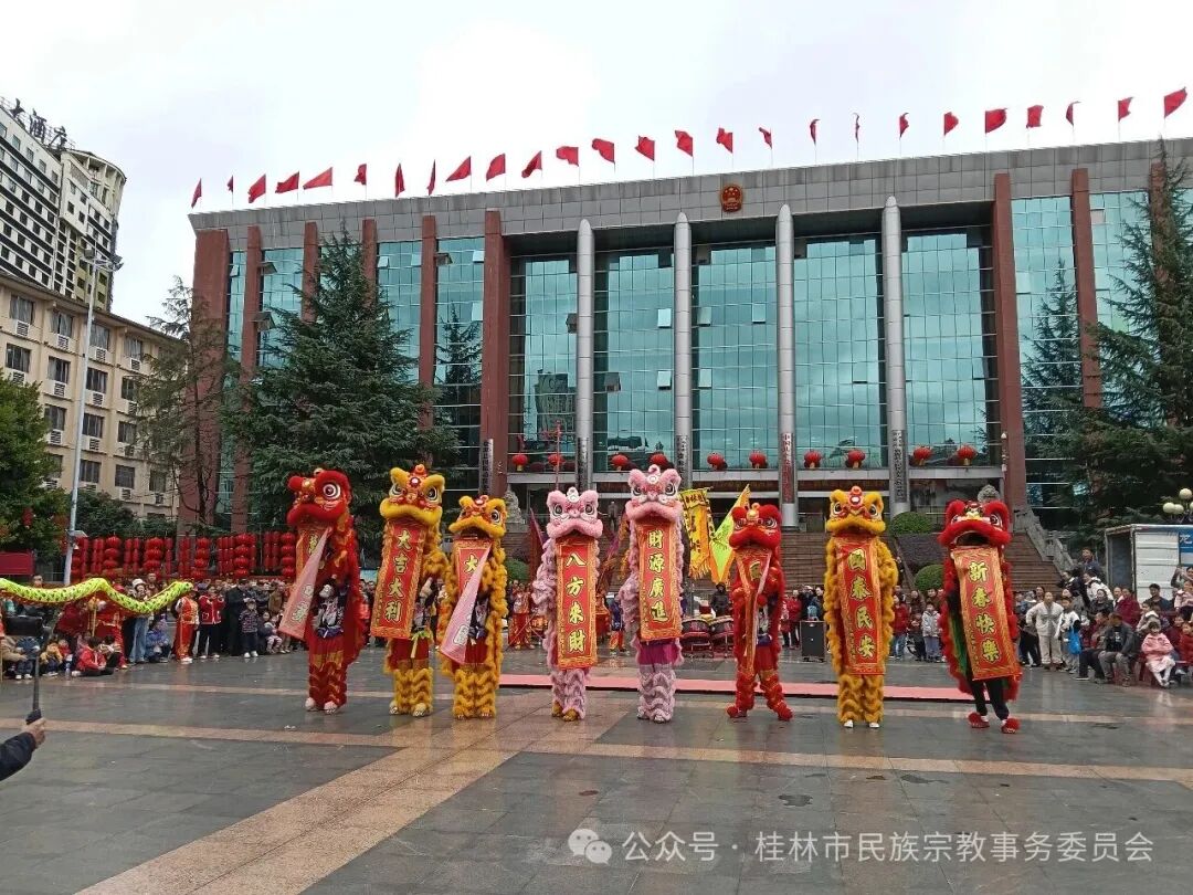 在人民广场,各族群众里三层外三层地欣赏着龙狮表演的精彩动作,感受着龙狮文化的深刻内涵和团结协作、拼搏奋斗的精神,同时祝福祖国和人民在新的一年里风调雨顺、国泰民安、迎祥纳福、勇敢奋进。一条条巨龙在空中翻腾,威风凛凛;一头头狮子憨态可掬,灵动活泼,演员们的精湛技艺加上一副副美好祝福对联的穿插呈现,赢得了观众的阵阵热烈掌声和啧啧称赞,喜庆吉祥氛围十分浓郁。