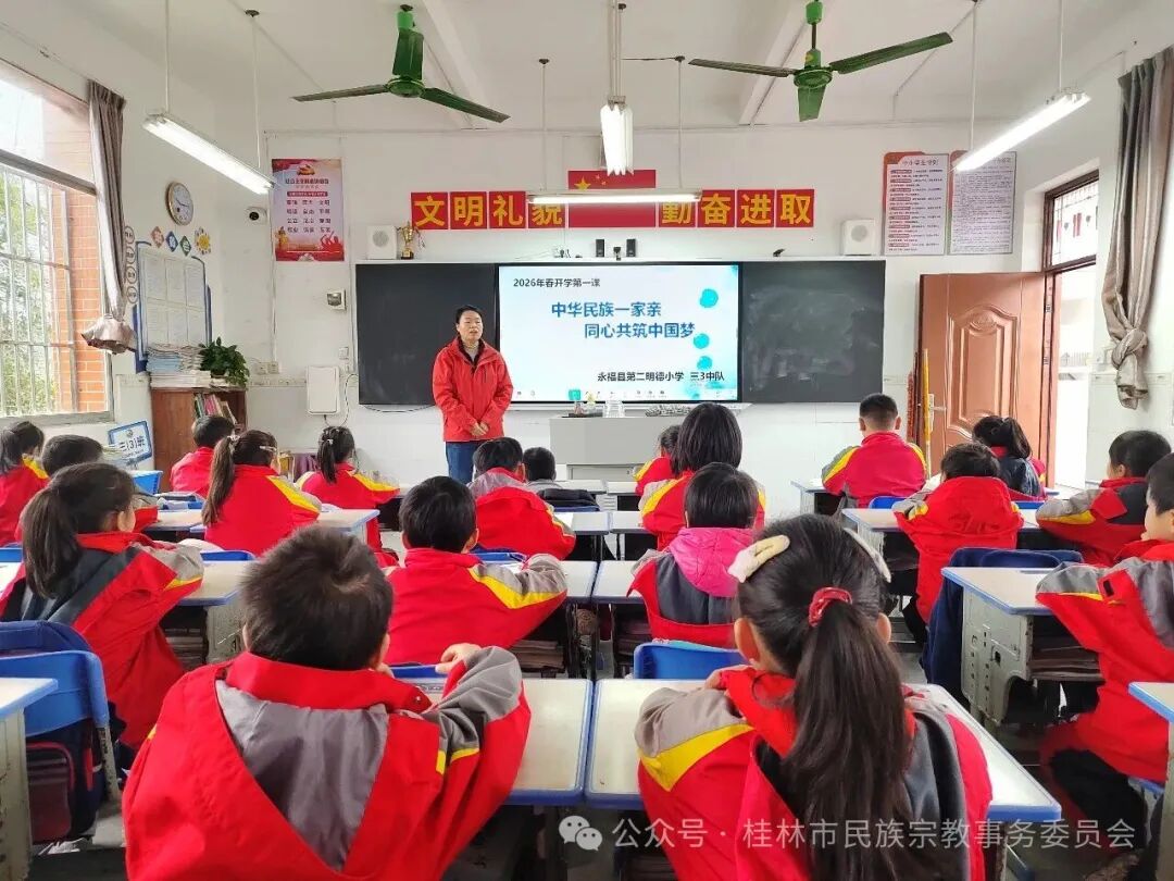 新学期伊始,永福县紧扣立德树人根本任务,以铸牢中华民族共同体意识为主线,组织全县70所中小学、幼儿园上好“开学第一课”,实现师生3万余人次全覆盖,推动铸牢中华民族共同体意识进校园、进课堂、入脑入心。