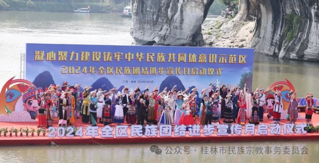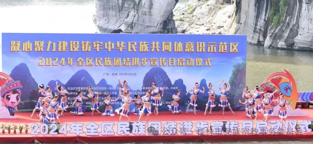 为全面贯彻落实习近平总书记关于加强和改进民族工作的重要思想,深入贯彻落实习近平总书记对广西重大方略要求以及广西壮族自治区党委、政府关于建设铸牢中华民族共同体意识示范区的决策部署,4月9日上午,广西建设铸牢中华民族共同体意识示范区2024年民族团结进步宣传月启动仪式在桂林市举行,开启为期一个月的宣传教育活动。