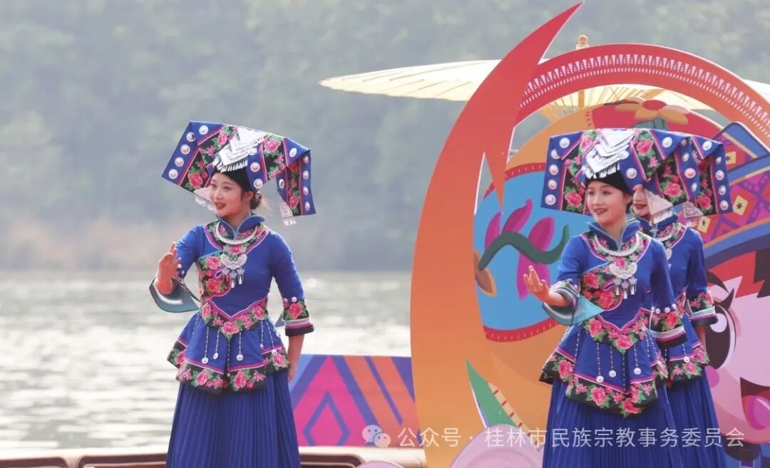 启动仪式现场,开展以“美从漓江来·中华民族一家亲”为主题的精品文艺汇演,以铸牢中华民族共同体意识为主线,突出中华优秀传统文化的精神内核,构筑中华民族共有精神家园。《迎客歌》、《中国56个民族服饰秀》、舞蹈《春到苗岭》、《绣球舞动壮乡情》以及歌伴舞《心手相牵》等节目精彩纷呈,让各族群众沉浸式领略民族文化风采。