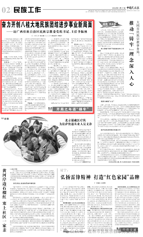 李振林:2026年,广西将深入学习贯彻习近平总书记关于加强和改进民族工作的重要思想,树立和践行正确政绩观,坚持以“铸牢”为主线,抓住重点、持续用力,开拓创新、实干苦干,奋力开创民族团结进步事业新局面。