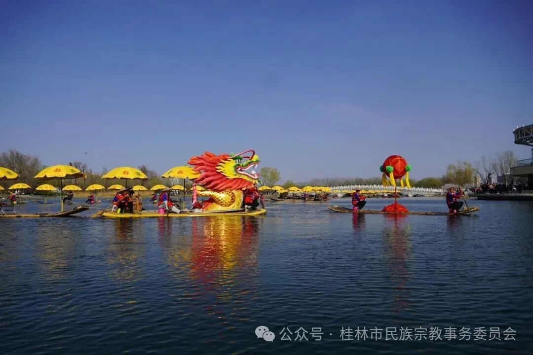 农历二月二“龙抬头”,承载着中华民族对风调雨顺、五谷丰登的千年祈愿,是各民族共庆共享的传统民俗佳节。3月20日,2026紫竹院街道长河庙会暨“二月二龙抬头”民俗文化活动在京启动,来自广西桂林阳朔遇龙河的非遗项目“金龙巡游”惊艳亮相北京南长河,以龙为媒、以俗为桥,搭建起桂林阳朔与北京两地各民族交往交流交融的坚实平台,让南方少数民族民俗与北方传统风情碰撞交融,共绘民族团结和谐画卷。